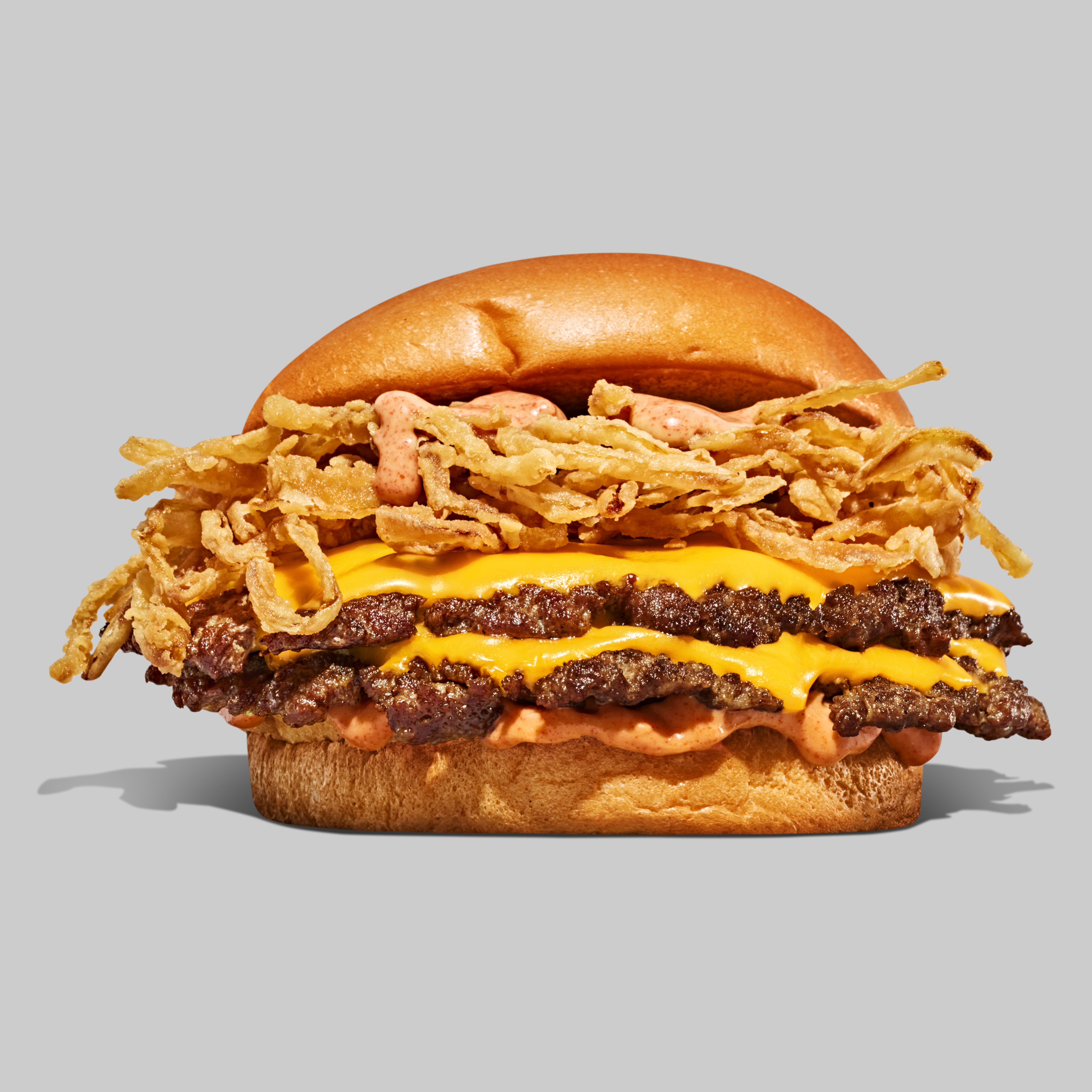 Hamburguesa de carne 120g, cheddar, cebolla crocante y salsa Dennys